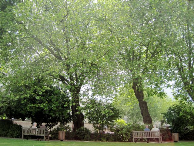 These past three days, we have had absolutely B-E-A-UTIFUL weather! It's been sunny and warm with a spot of cool in the shade. We tried to convince one of our teachers to have class outside it was so gorgeous. So let's just say I have been taking advantage of my free time and been going to parks, just reading, doing some homework, or just people watching. One thing I love about the people here is they love their parks. They just sit, eat lunch, chat with friends, drink, sleep, smoke, play football, do whatever they want all times of the day. If I don't live close to a park like one of these when I grow up I will be very unhappy. The picture I took above was so adorable in Remembrance Park, and it had the two old ladies on a bench, and the boys on the other, just like middle school:) Tuesday I spent three hours in the two parks that are located at the ends of my street, Bloomsbury and Russell Square. When I got to Russell Square, there was this group of 5th or 6th grade boys, all playing with wooden swords or really big pencils. I thought they only did that in Peter Pan. I guess now it's just an upscale version, with the boys dressed in their dockers and white button up shirts and ties and using hand sanitizer when finished playing.